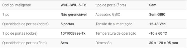 Flexível, a linha SWU conta com conexão Ethernet para aplicações industriais de forma compacta e robusta, possibilitando a comunicação com diversos equipamentos de maneira simples e amigável, sem a necessidade de configurações complexas. A conectividade otimizada dos switches industriais Ethernet SWU traz benefícios imediatos para seus equipamentos e para a planta fabril, como redução de custos e instalação para monitoramento, ideal para a crescente demanda de redes de comunicação. A linha SWU também pode ser utilizada na configuração da VLAN para agrupar os dispositivos de forma lógica, conforme os departamentos de trabalho. O switch recebe uma mensagem de qualquer dispositivo conectado à rede e a transmite apenas para o dispositivo para o qual a mensagem é endereçada. Com isso, torna-se mais eficiente, pois determina o endereço e a porta de destino para cada frame que circula na rede, manipulando e transmitindo dados entre vários dispositivos dentro dessa LAN. A linha SWU possui alimentação de 12 a 48 Vcc, montagem fácil e versátil para trilho DIN ou superfícies planas, visando atender diferentes ambientes e aplicações, além de uma ampla faixa de temperatura operacional padrão, que vai de -10 a 60 °C.
